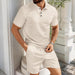 Men's Solid Jacquard Short Sleeve Polo & Shorts Two-Piece Casual Set